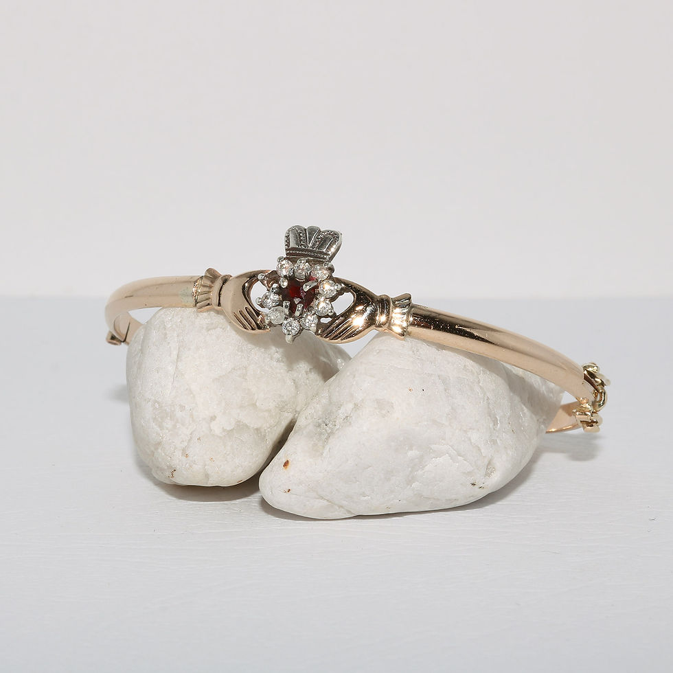 9ct Solid Yellow Gold Hallmarked Garnet Locking Bracelet Bangle Vintage